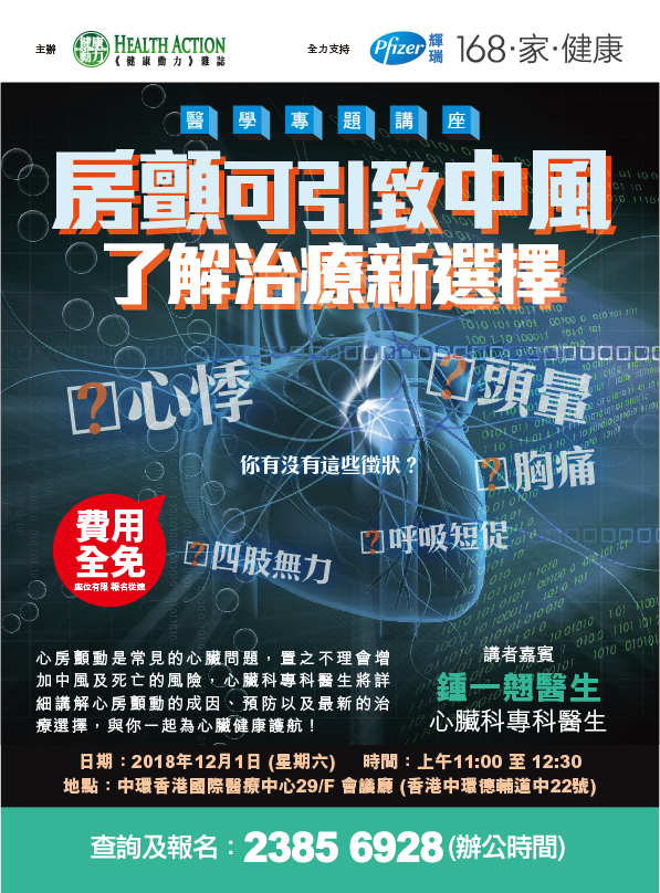 心房顫動是常見的心臟問題,置之不理會增加中風及死亡的風險,心臟科專科醫生將詳細講解心房顫動的成因、預防以及最新的治療選擇,與你一起為心臟健康護航!