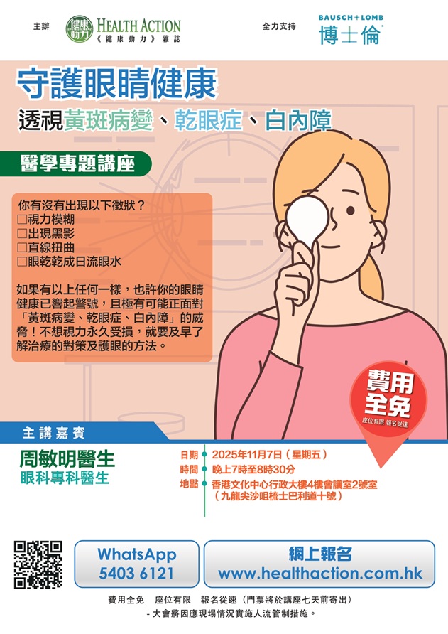 【守護眼睛健康—透視黃斑病變、乾眼症、白內障】醫學專題講座
