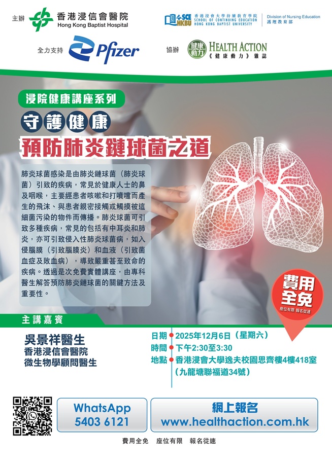 2025 浸院健康講座系列 - 【守護健康:預防肺炎鏈球菌之道】醫學專題講座