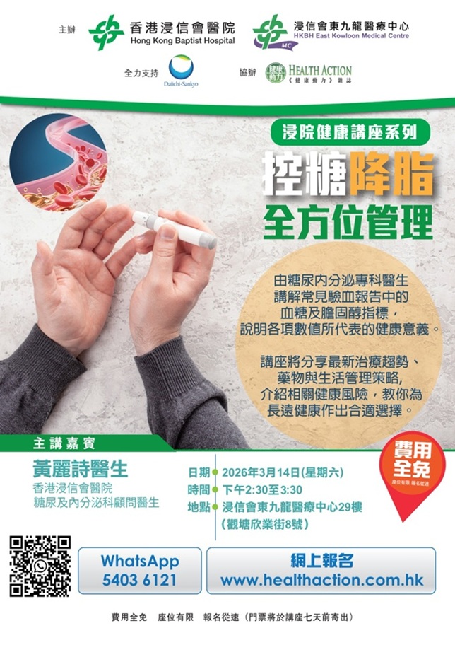 【2026 浸院健康講座系列 — 控糖降脂 全方位管理】醫學專題講座