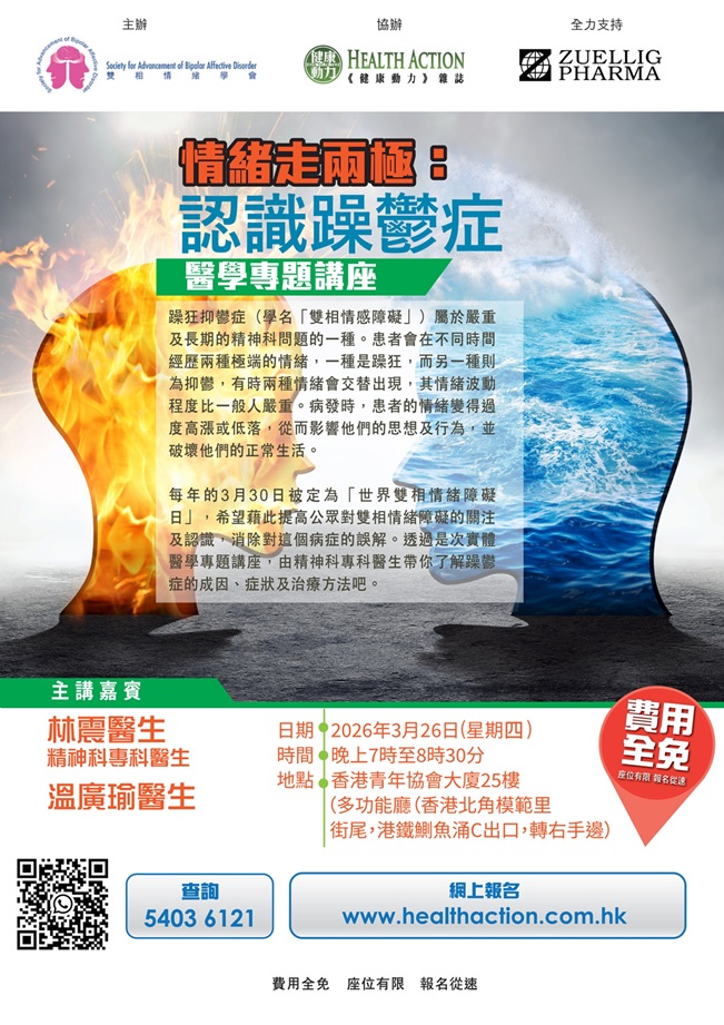 【情緒走兩極:認識躁鬱症】醫學專題講座