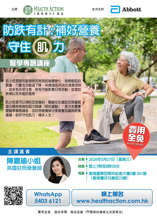 【防跌有計 : 補好營養,守住肌力】醫學專題講座